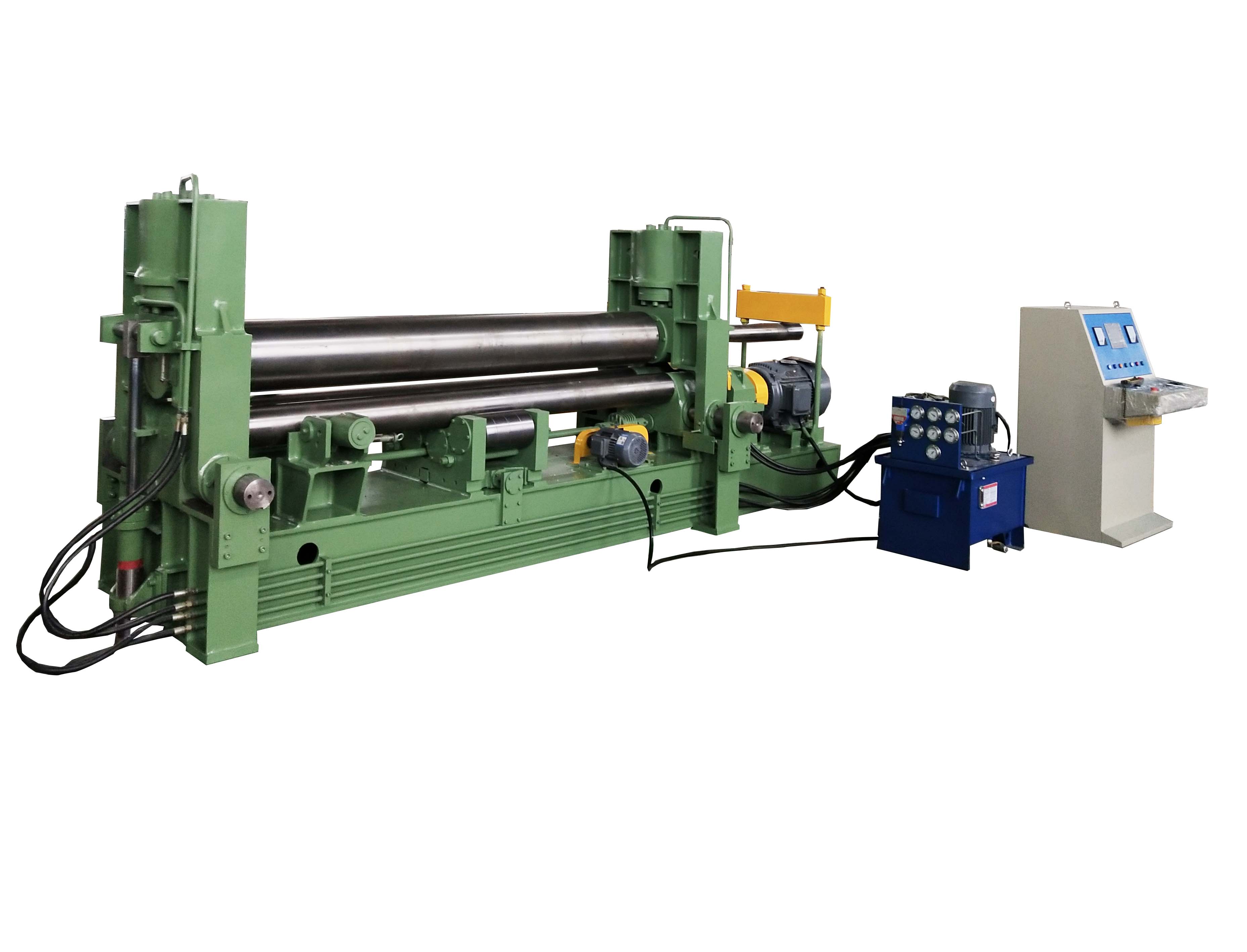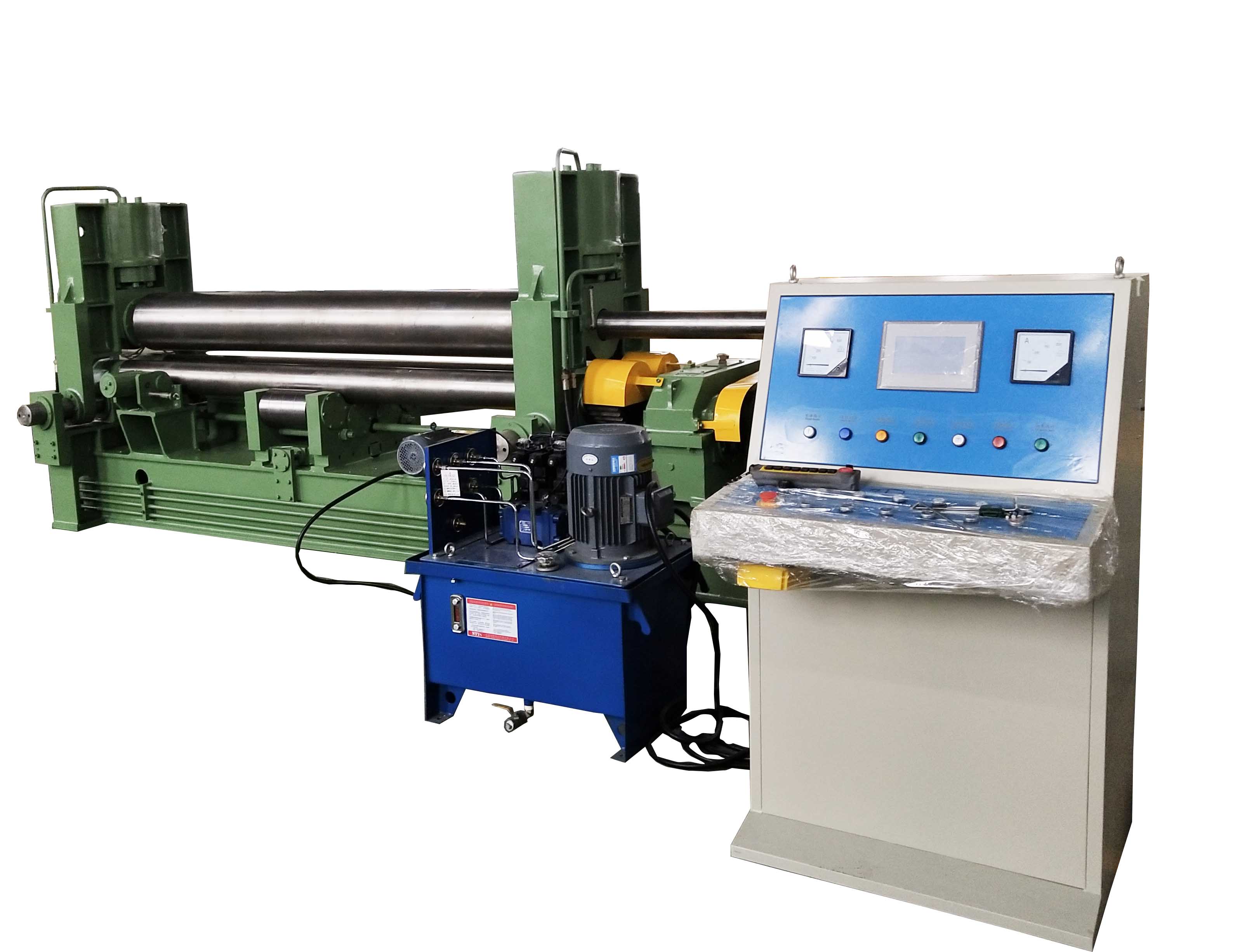 W11SNC萬(wàn)能式三輥卷板機(jī)是一種雙夾板彎板機(jī)。 上輥為液壓驅(qū)動(dòng)。 上輥可水平和垂直調(diào)節(jié),兩個(gè)下輥是固定的。 所有合金鋼輥均經(jīng)過(guò)感應(yīng)淬火和熱處理。 經(jīng)過(guò)感應(yīng)淬火處理后,所有的輥都將被研磨和拋光。