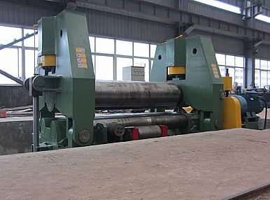卷板機(jī)的兩下輥為主動(dòng)輥,上輥為從動(dòng)輥。它廣泛使用于造船、鍋爐、航空、水電、化工、金屬結(jié)構(gòu)及機(jī)械制造行業(yè)。